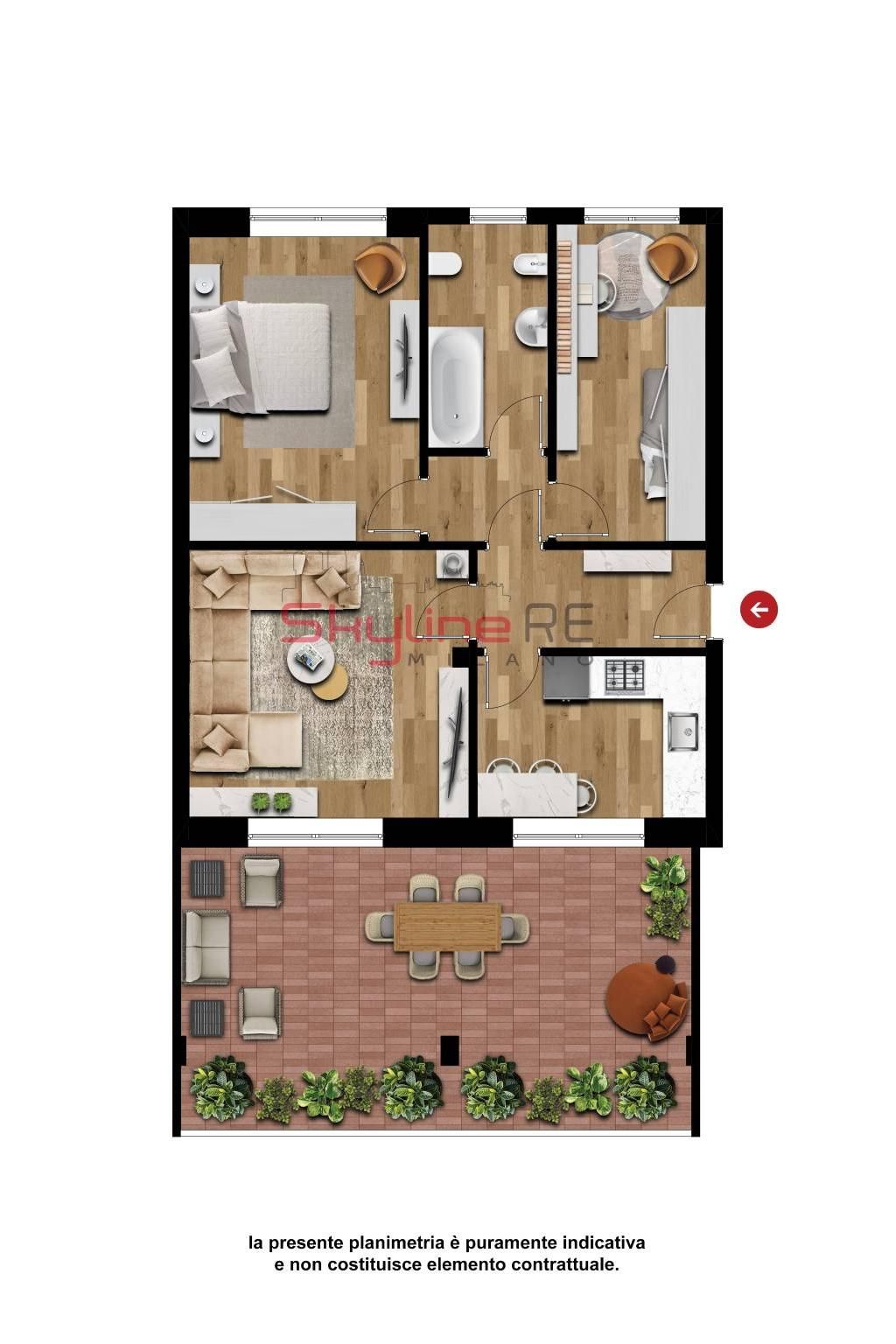 TRILOCALE VUOTO POSSIBILITA' CUCINA ARREDATA ULTIMO PIANO TERRAZZO MQ 35 — CONTRATTO INTESTABILE ANCHE A SOCIETÀ. A breve distanza da Corso Vercelli e dal Teatro Nazionale, proponiamo in locazione trilocale di circa 75 mq al sesto ed ultimo piano di stabile signorile dotato di portineria e ascensore, con terrazzo di circa 35 mq. L'appartamento, consegnato vuoto con possibilità della cucina arredata, sarà disponibile dal 25/05/2026 con possibilità di anticipo. La composizione interna prevede ingresso, soggiorno, cucina arredata, due camere da letto, bagno e terrazzo con accesso da soggiorno e cucina. La doppia esposizione e le ampie aperture garantiscono ottima luminosità. L'unità presenta pavimenti in parquet, riscaldamento centralizzato. Zona ottimamente servita: nelle immediate vicinanze si trovano la nuova fermata M4 California, la stazione M1 Wagner, mezzi di superficie, negozi, scuole e aree verdi.