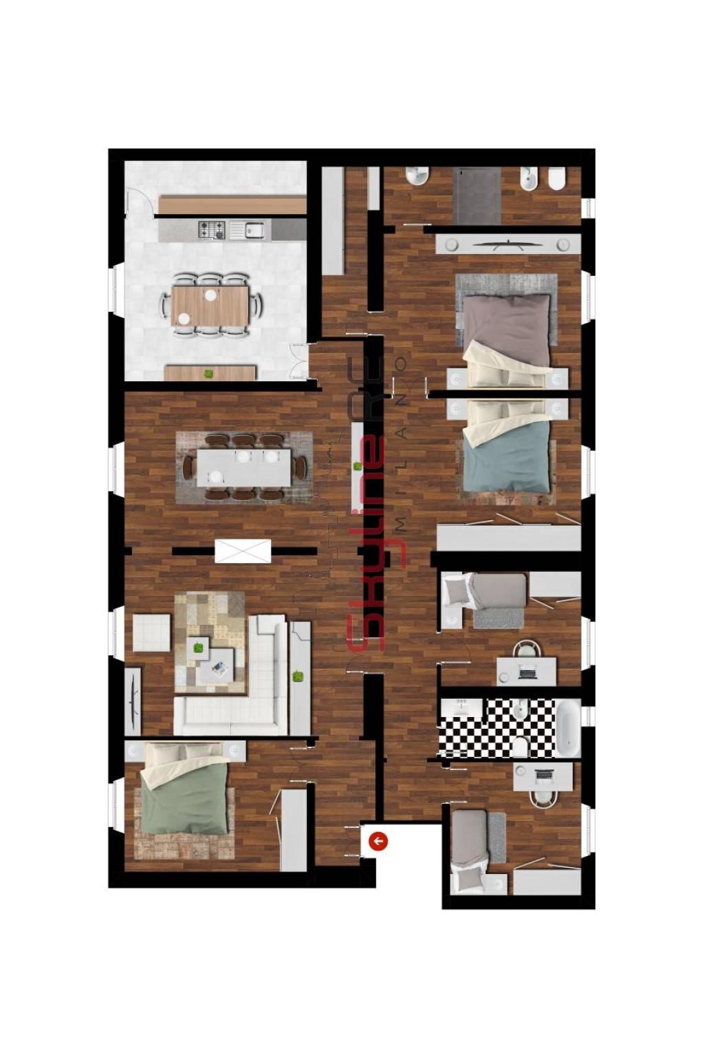 LUMINOSO PLURILOCALE MQ 220 PIANO ALTO DISPONIBILE DAL 10/07/26 ANTICIPABILE. Nel cuore di Brera, all'interno di un palazzo d'epoca dotato di portineria e ascensore, si propone in locazione un elegante appartamento di circa 220 mq, situato al quarto piano. L'ingresso conduce a una luminosa zona giorno con ampio salone di rappresentanza collegato alla sala da pranzo. La cucina abitabile, spaziosa e funzionale, è servita da una pratica dispensa con zona lavanderia. La zona notte comprende una camera padronale con bagno en suite e cabina armadio, altre quattro camere da letto e un secondo bagno. La luce naturale, che entra dalle ampie finestre, valorizza gli ambienti e le finiture, esaltate anche dall'altezza dei soffitti pari a 3,45 m. Pavimentazione in parquet in tutti gli ambienti, ceramica nei servizi e riscaldamento centralizzato a radiatori. Soluzione ideale per famiglie che ricercano spazi generosi e comfort in uno dei quartieri più prestigiosi e richiesti di Milano. Disponibile dal 10/07/26.